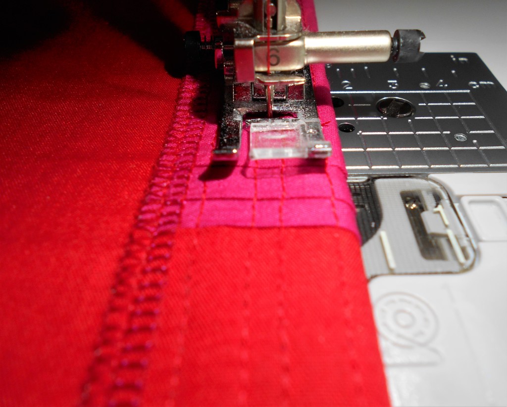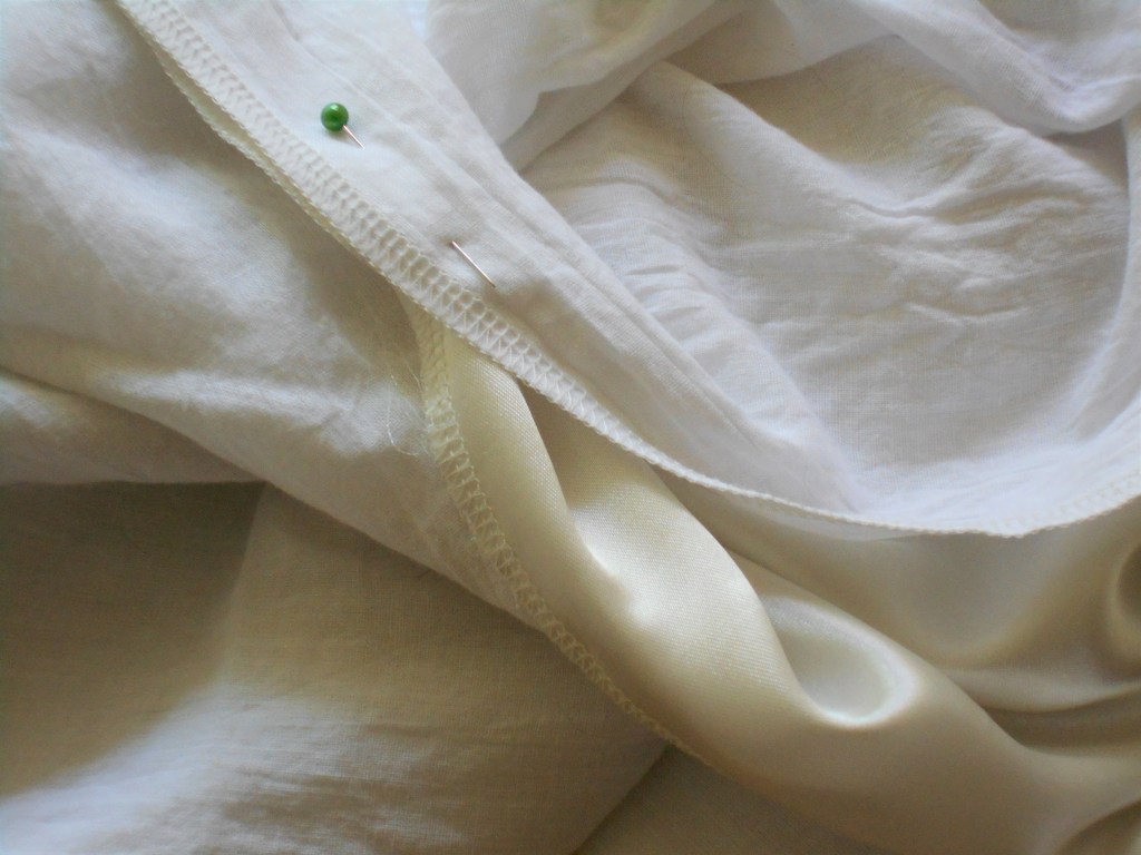 Cotton voile lining and charmeuse satin serged together