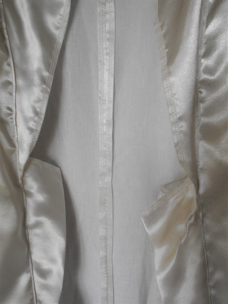 If there was one thing I learned during my time as a Valkyrie, it’s that polyester linings can act as saunas to my skin. Nobody wants sweat rolling down their back and besides, the silvery white charmeuse satin I bought was just a bit too see-through for my liking. It needed a lining ─ and a cotton one at that ! Cotton voile was the perfect choice.