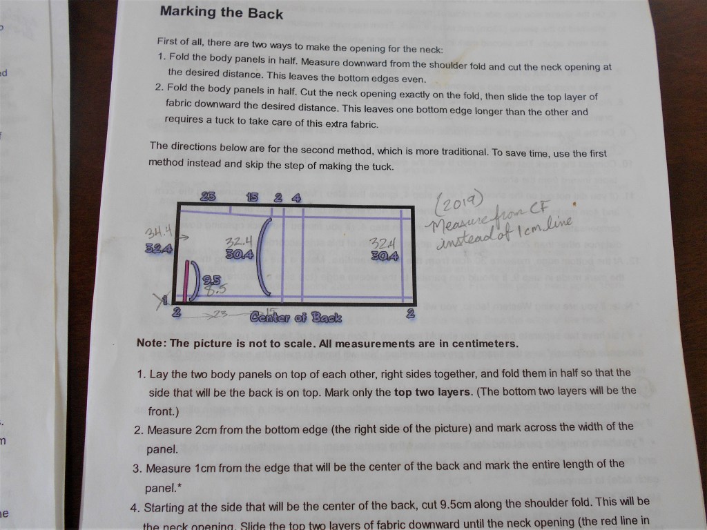 With the success of my tropical print yukata, I didn’t see any reason why I shouldn’t use the same pattern instructions, which worked so well in 2016. Look no further than this helpful site: http://www-personal.umich.edu/~weyrbrat/Japan/yukata/ I have all the pages printed out and stored in a zip top bag for future uses. The instructions are vivid, realistic, and accurate and equip sewers to create their own authentic yukata (or kimono) from scratch. Since I wasn’t aiming to create a historically/culturally accurate garment, I made my own adjustments to the notes and measurements that I wrote down in 2016.