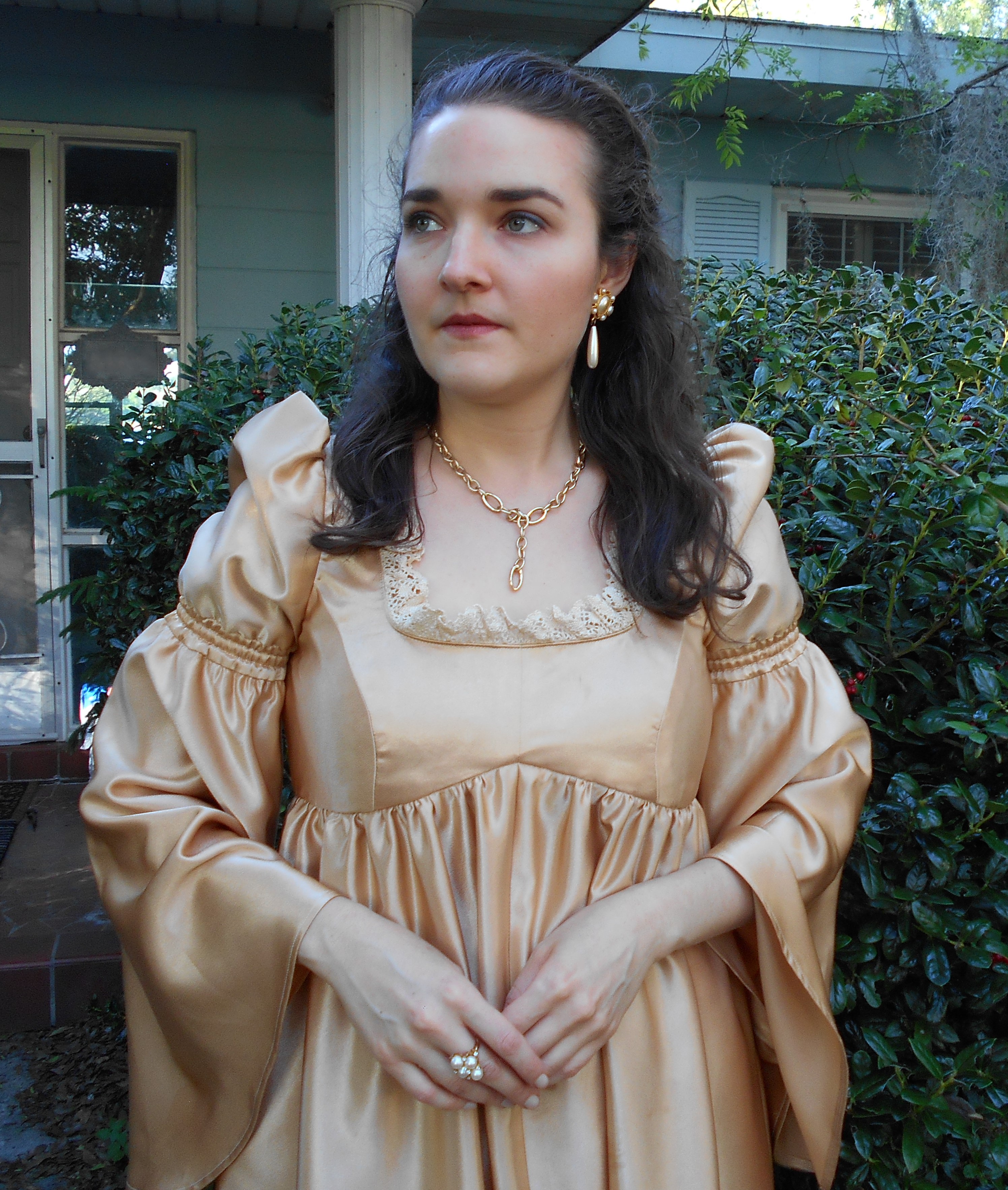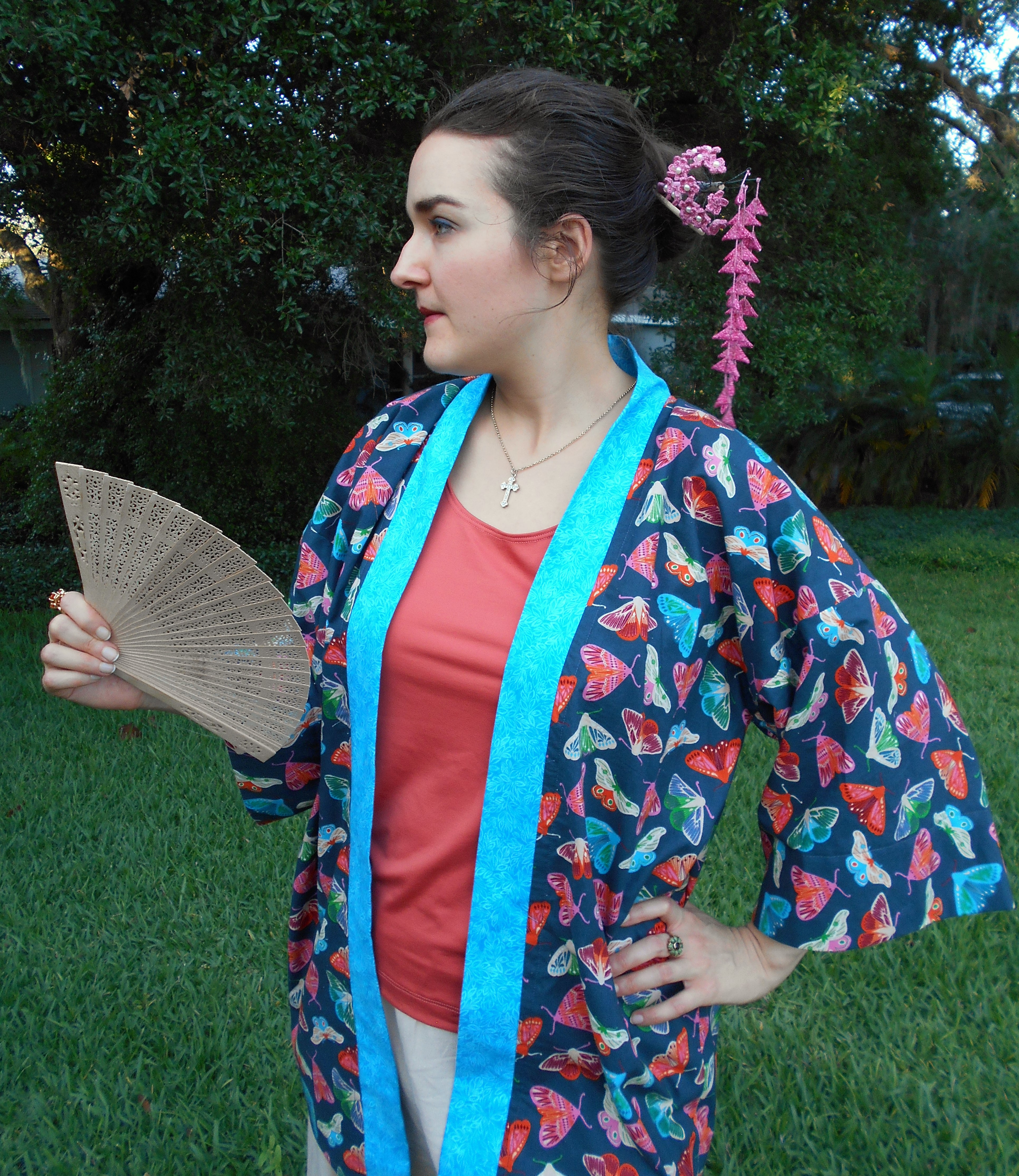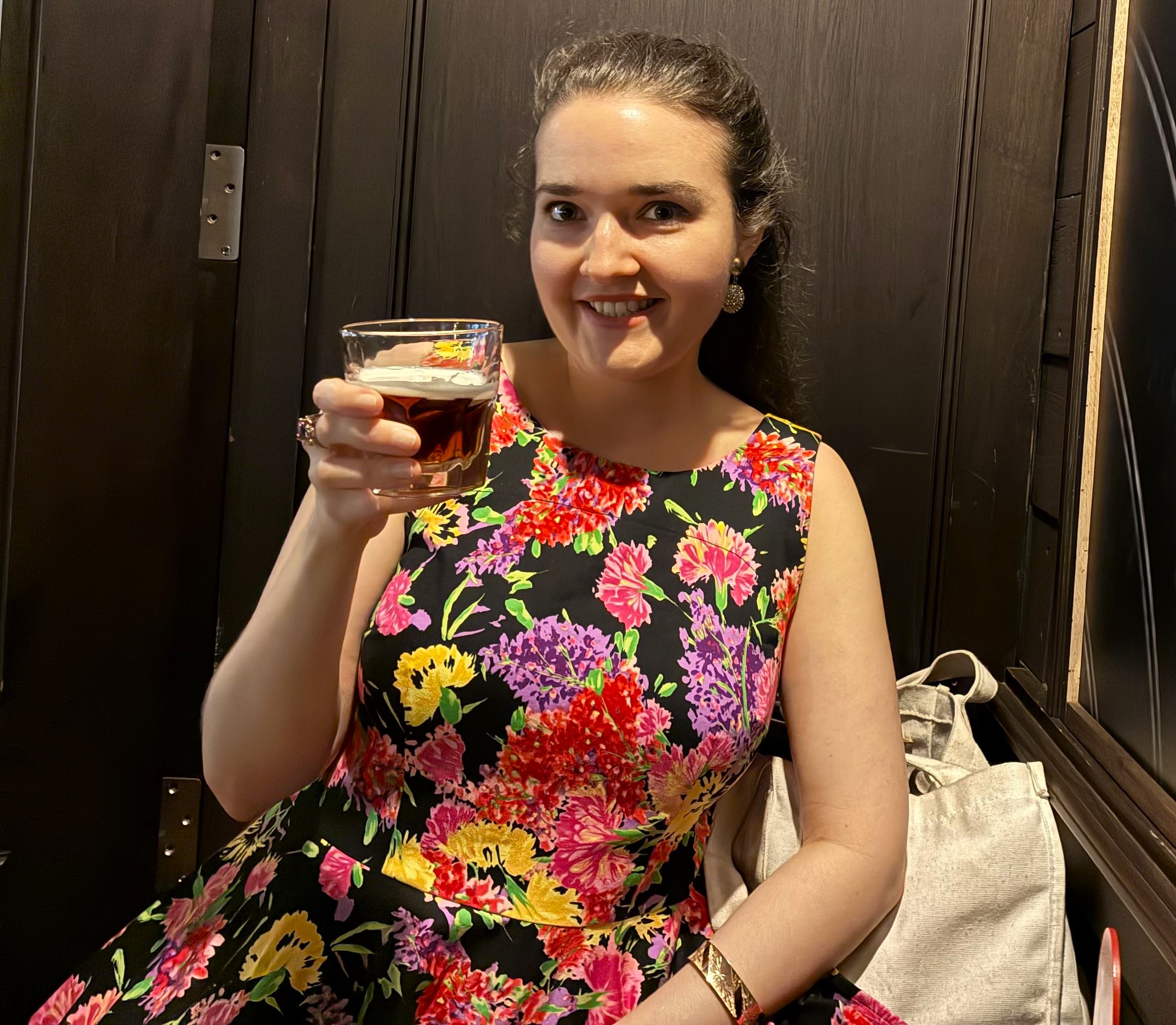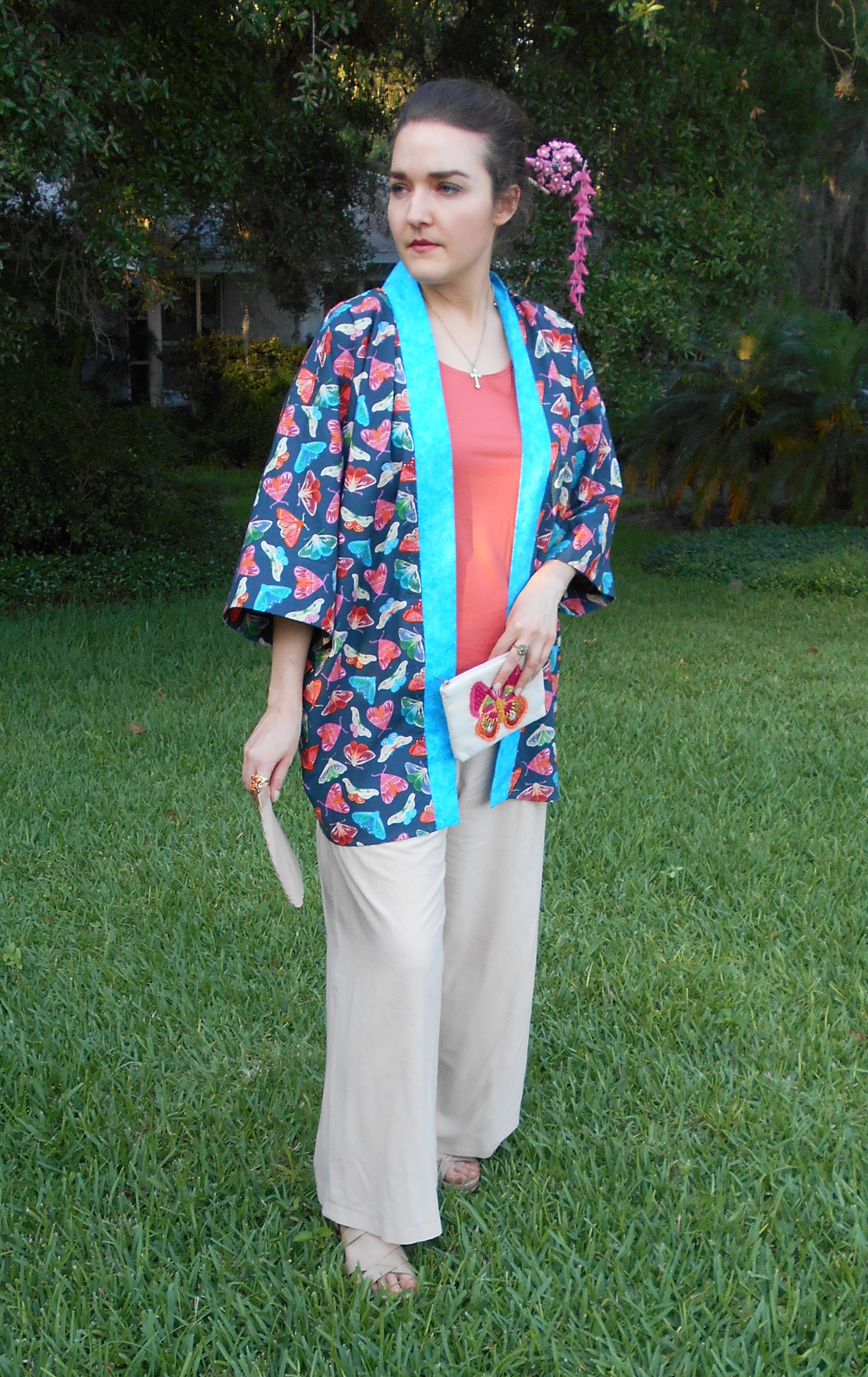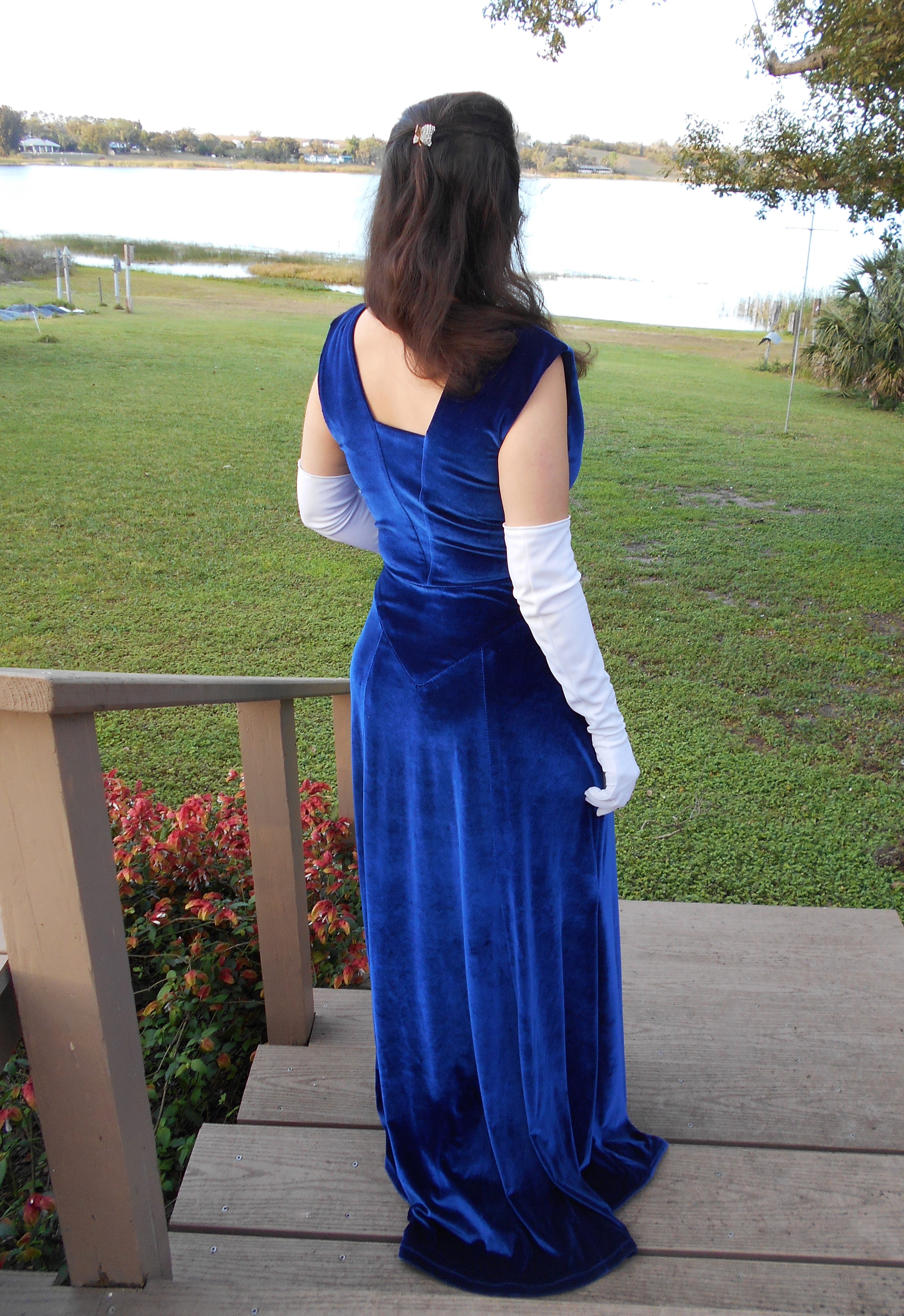 Watching the videos, along with reading several blog posts and sewing a plethora of mock-ups, helped me achieve a near perfect fit on a bodice block that was far from my measurements and bone structure. My first dress was made out of a stretch cotton sateen bottomweight in a vibrant floral print. Its first public appearance was at the Florida State P.E.O. Convention during the Friday night social and helped me to feel like a butterfly, flitting around the dance floor in that voluminous skirt.