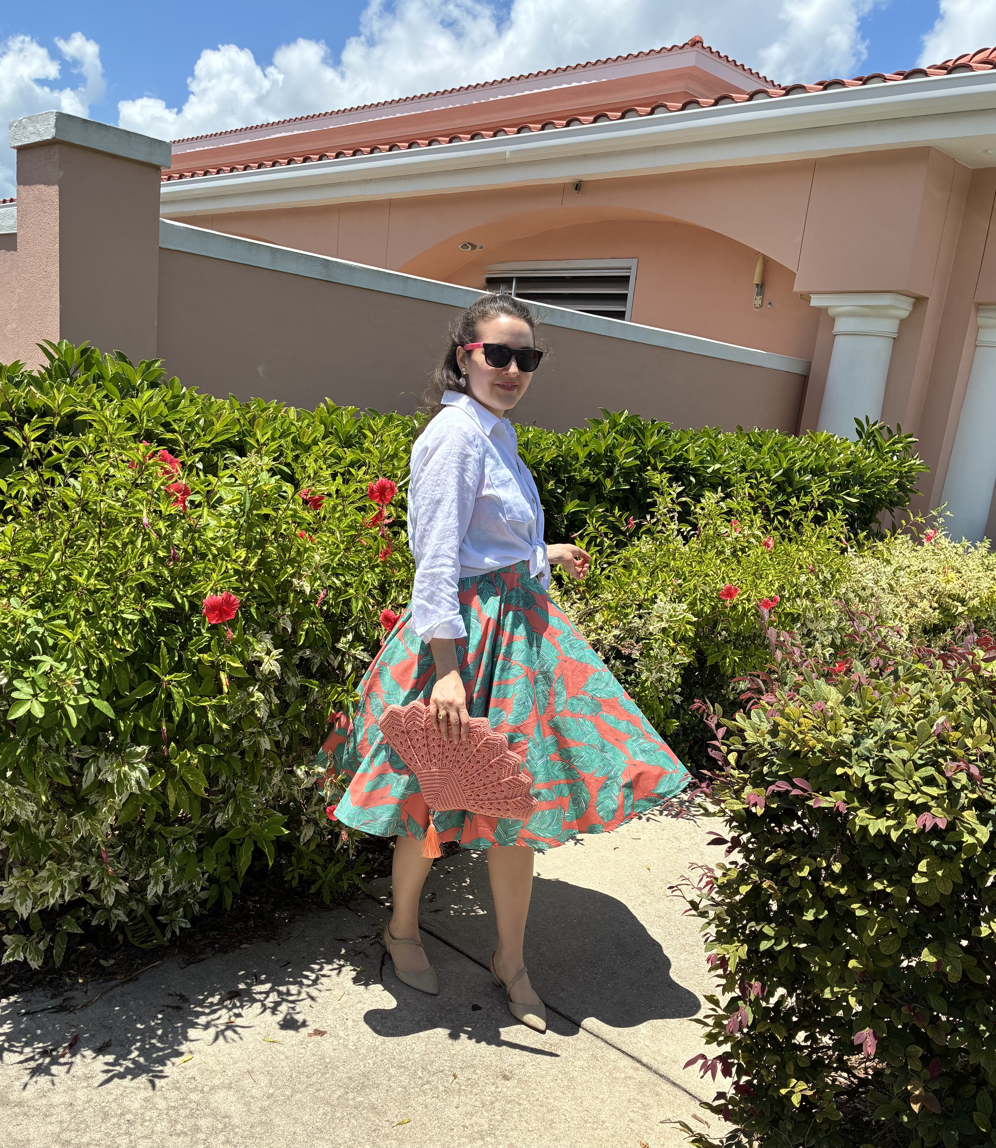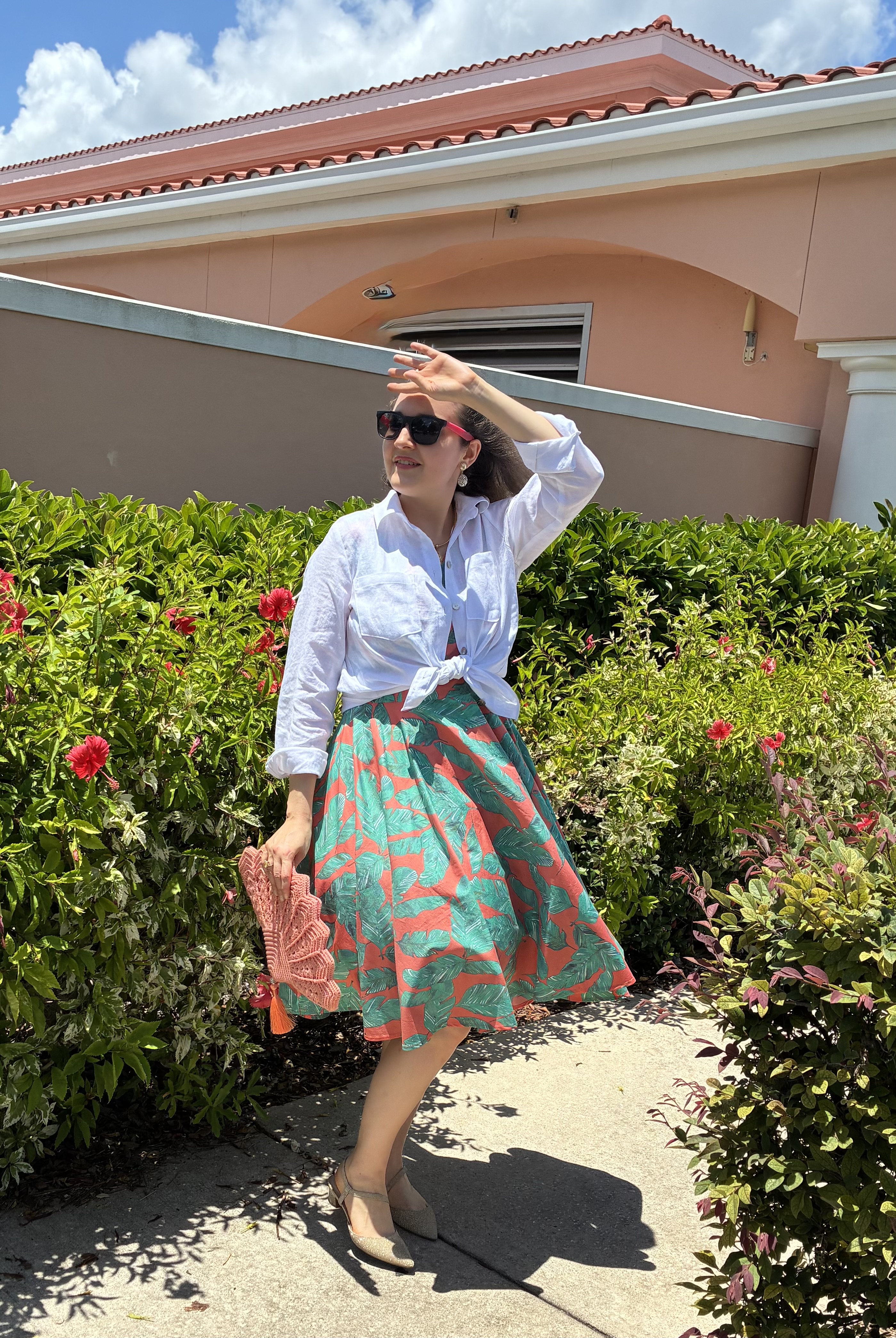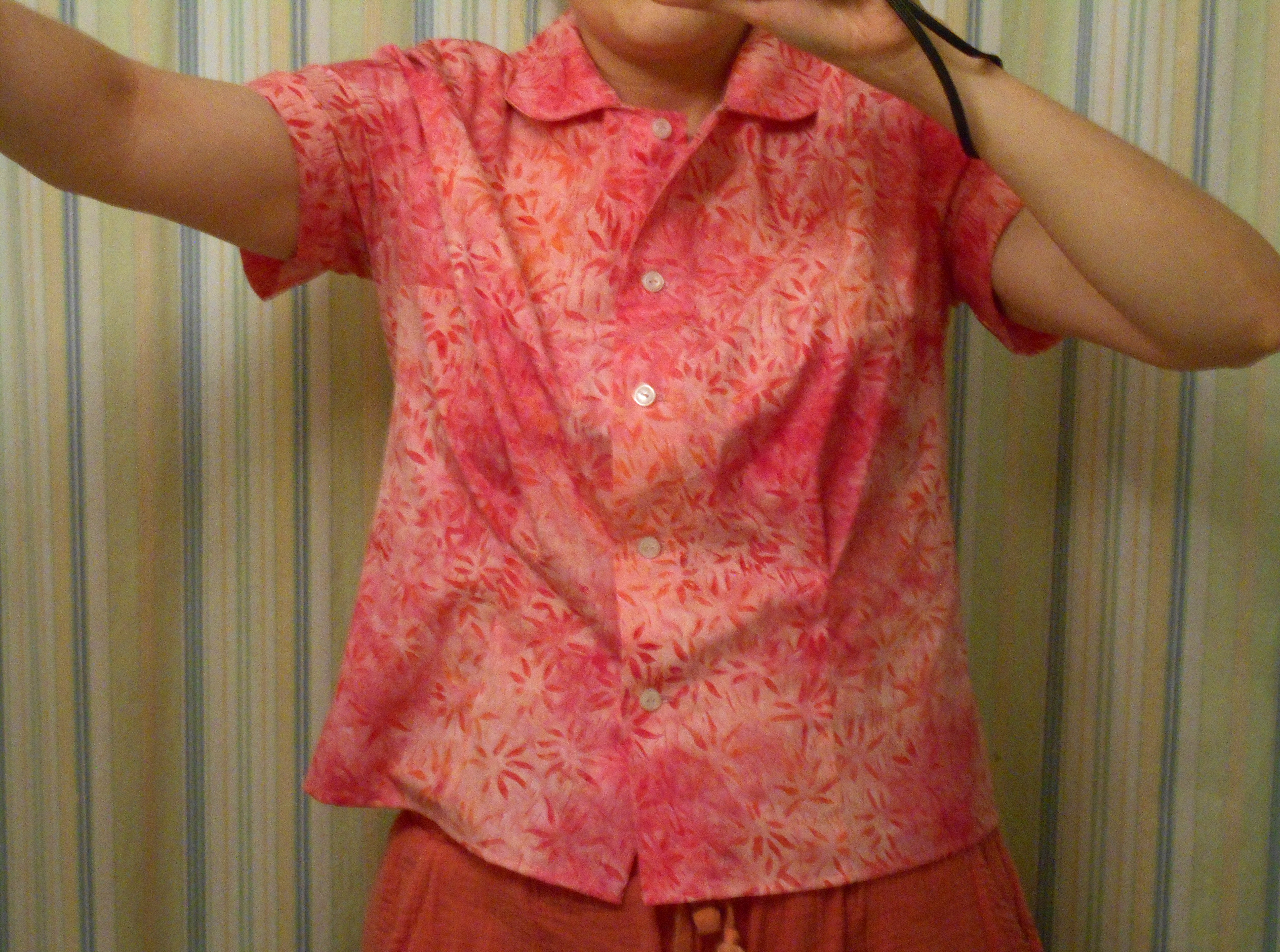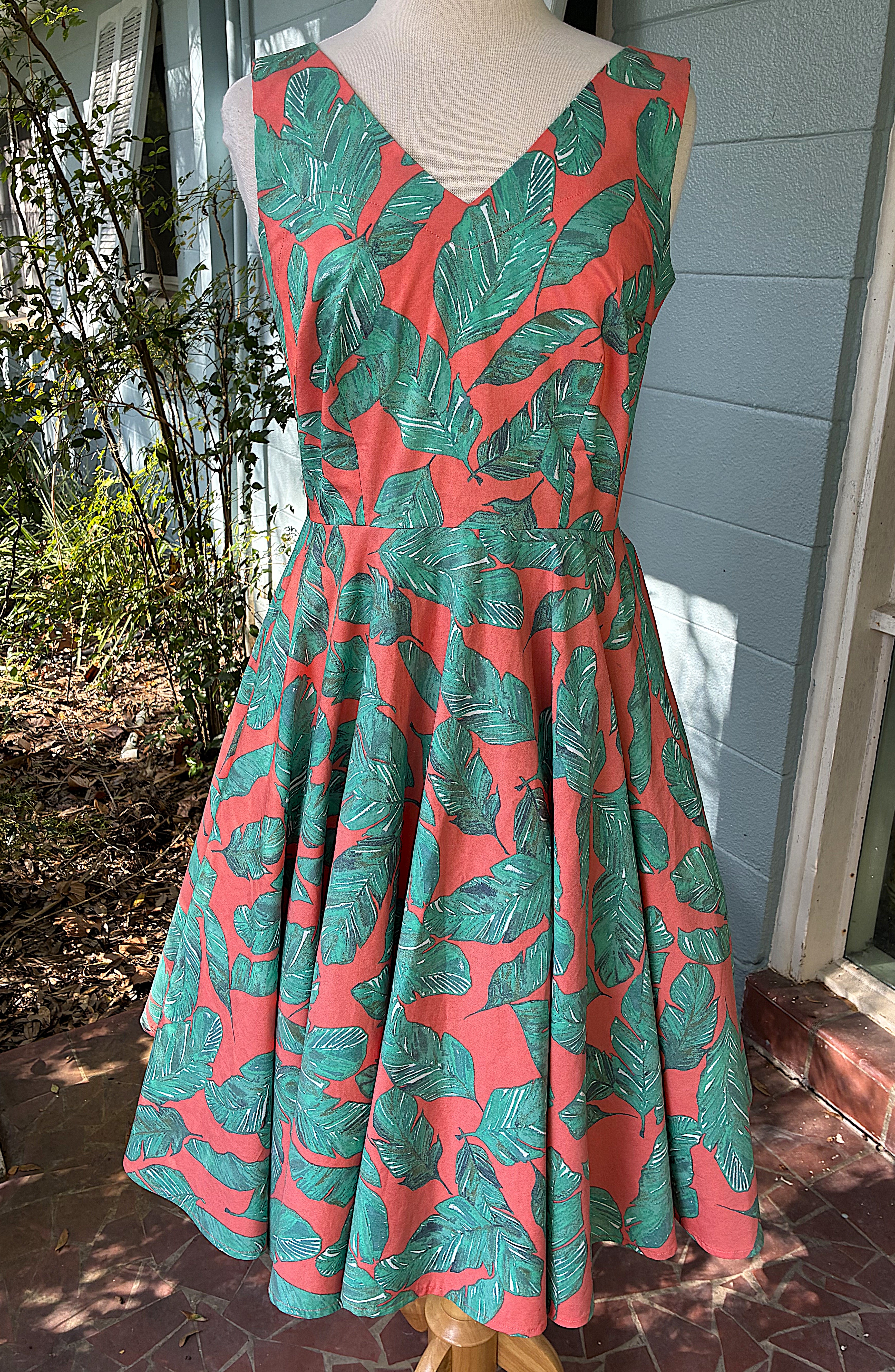A wild foliage print on a cotton/polyester stretch shirting made for a delightful summer dress, especially when paired with a linen button down shirt as a cool topper.