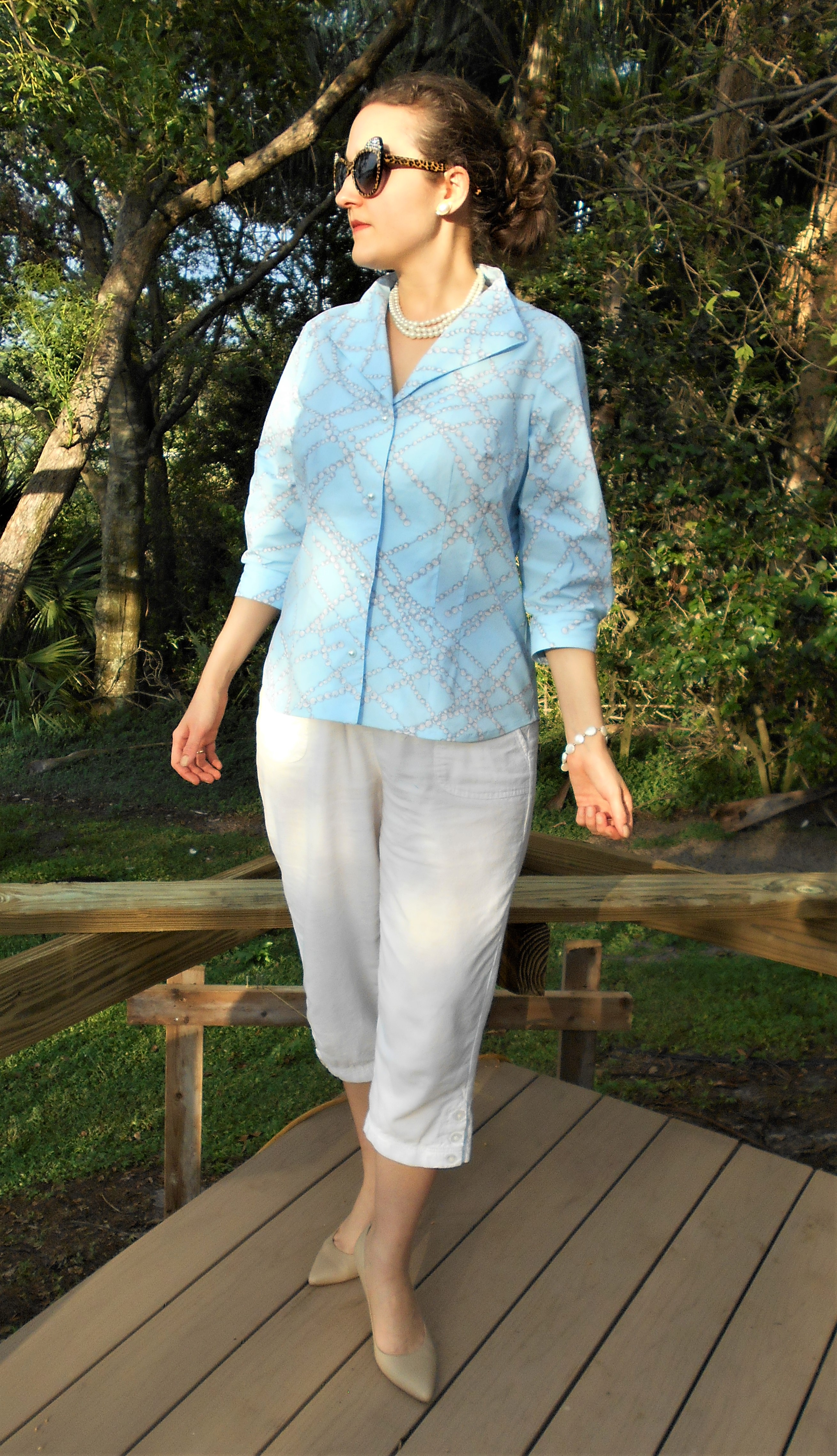 A consignment cardigan, saddle shoes, pink poodle bobby sox, and a polka dot chiffon hair tie made my outfit complete. Don’t forget about the cat eye glasses ! They were given to me as a birthday gift years ago. Thank you, Aunt Countess !