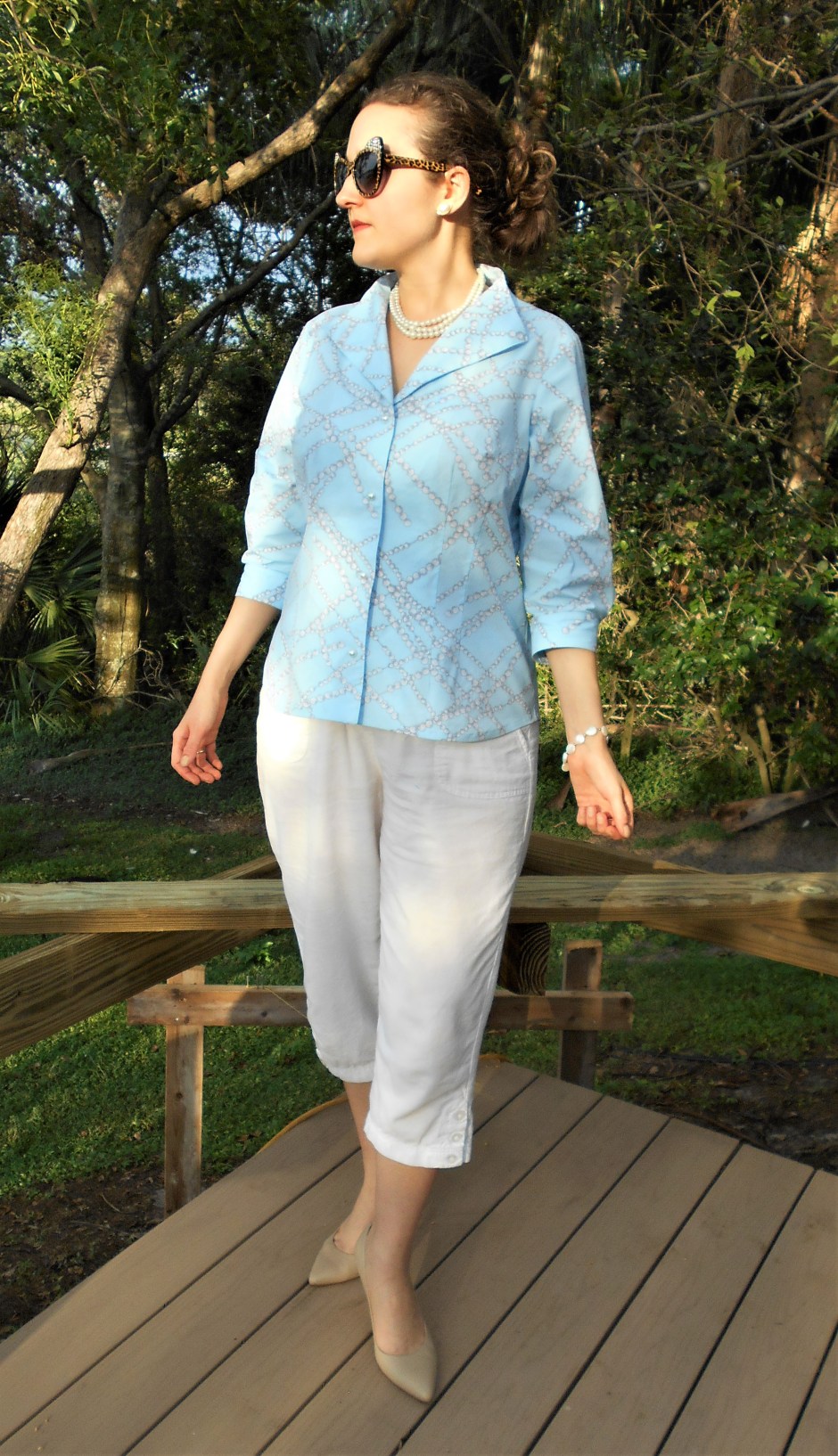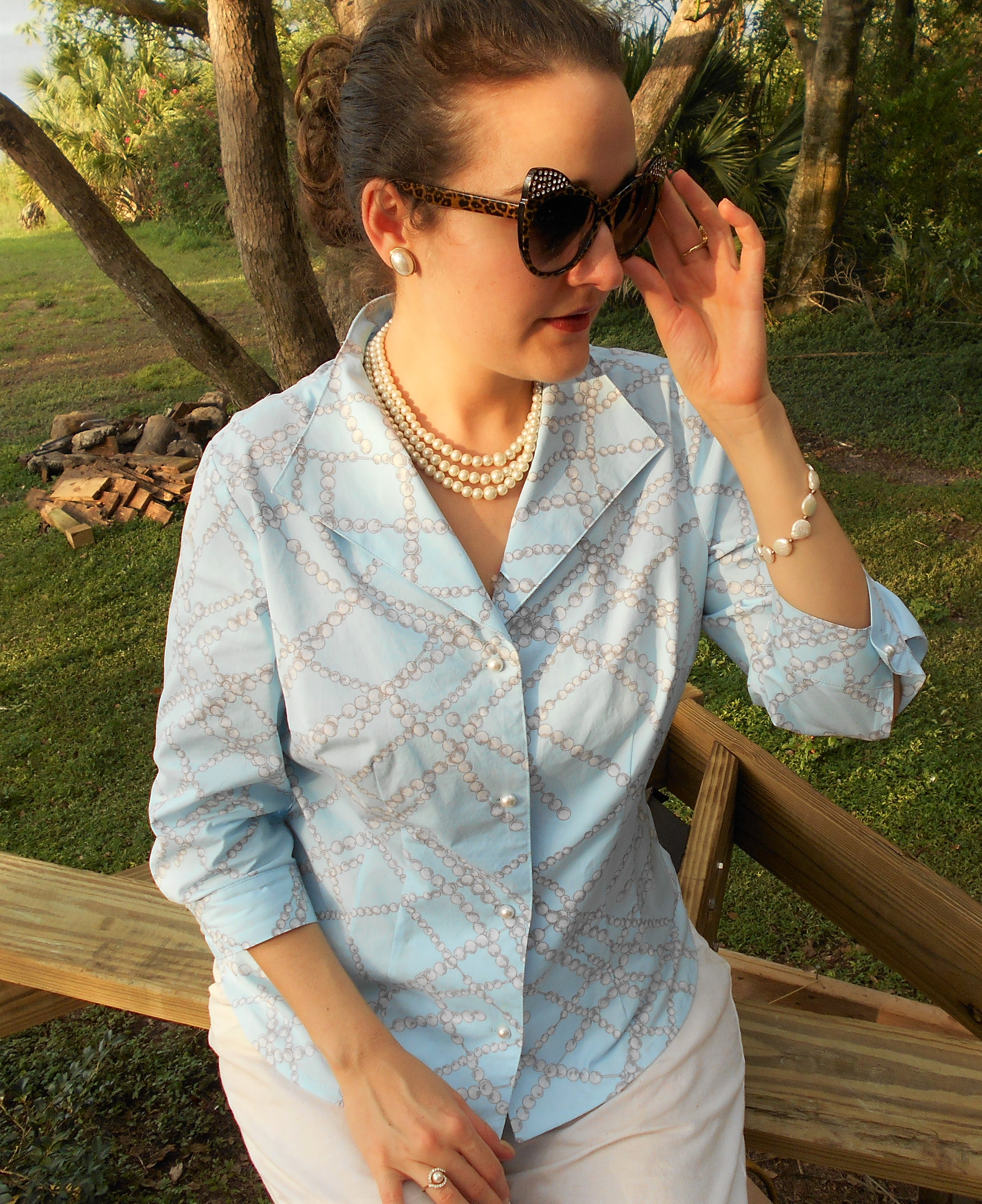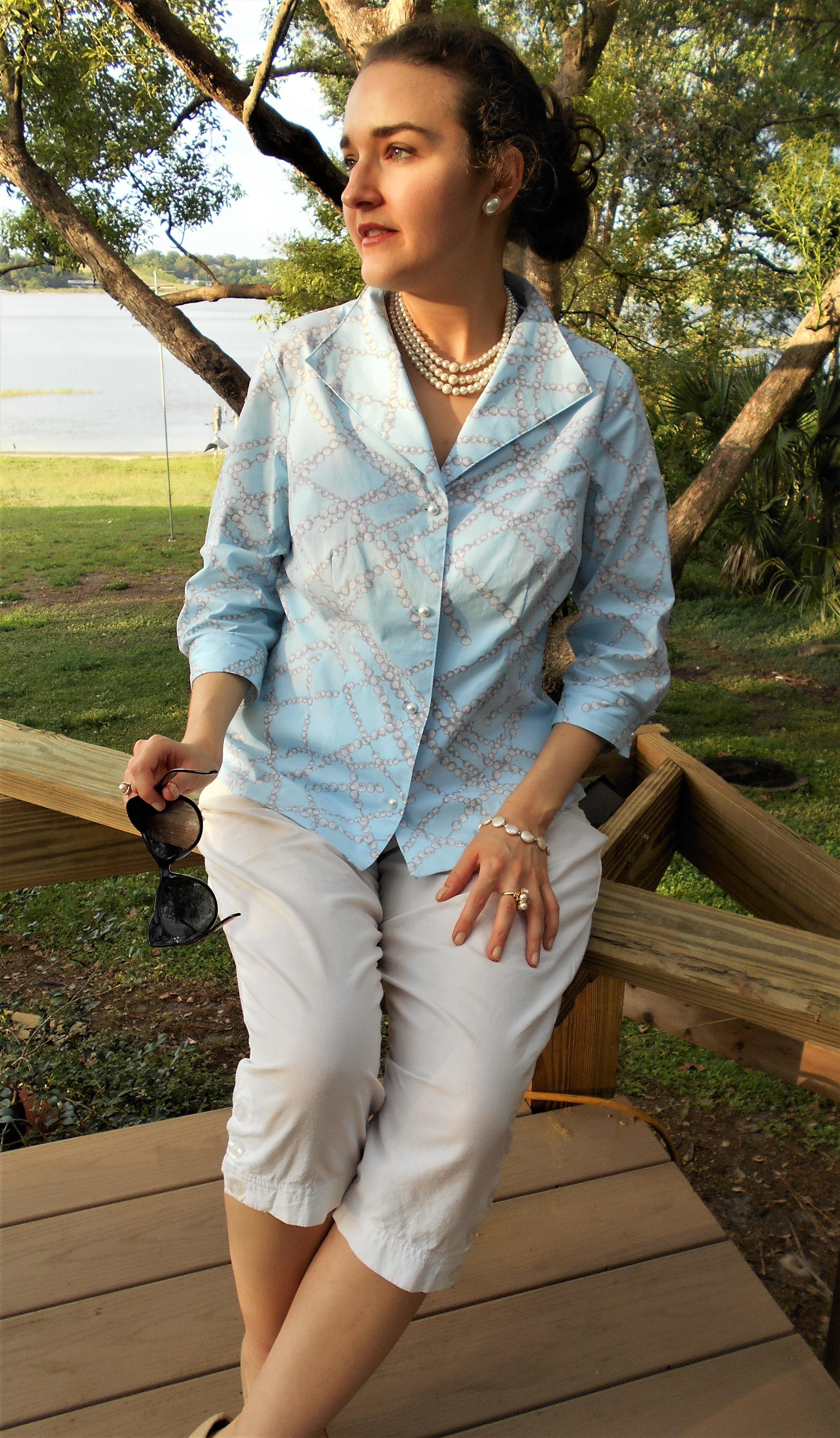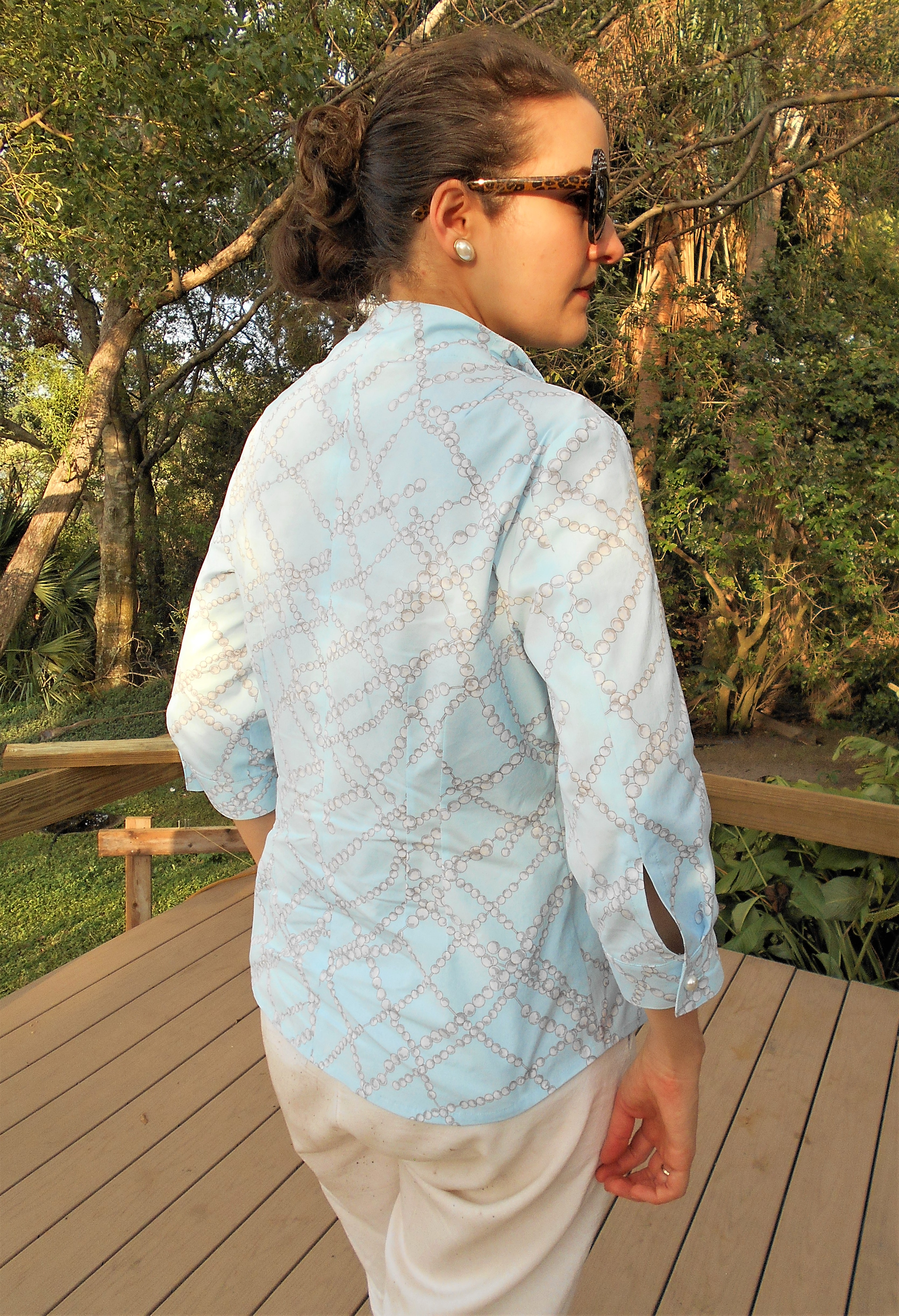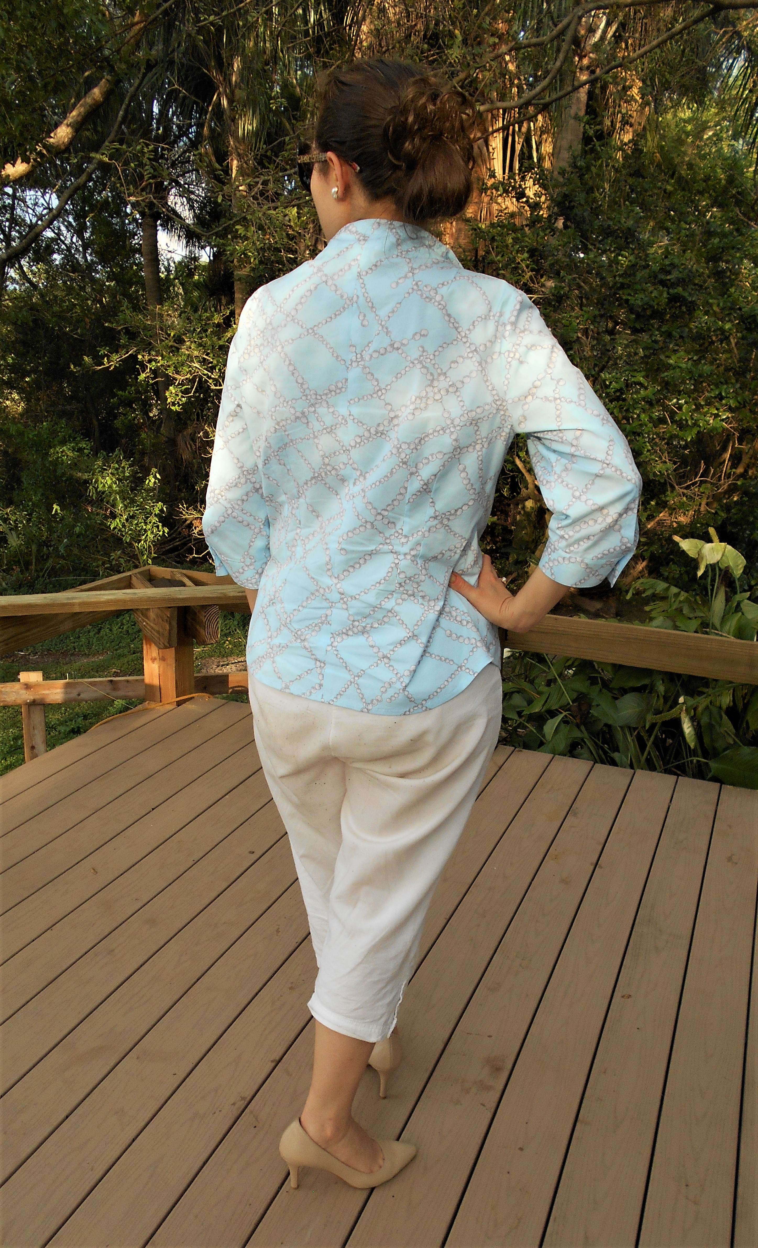 Fitting the blouse was more of a challenge. Previously, I had sewn a wearable muslin of the Peter Pan collared blouse included in the pattern envelope. While it seemed to fit from the front, a test of simple arm movements proved the blouse to be very constricting and an impossibility for dancing. In need of assistance, I reached out to Katrina Walker, one of my fit teachers. A broad back adjustment was applied to the paper pattern as was a full bust adjustment. After raising the armhole slightly, my new blouse was much improved. Thank you, Katrina !