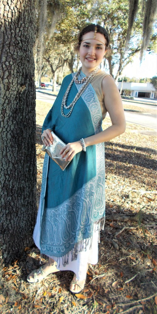 The dress was just what I desired ─ fall color, Old World jewelry, and casual stateliness for my imagined Neapolitan holiday. Best of all, I didn’t have to pay upwards of $100 ! It was a win-win-win !